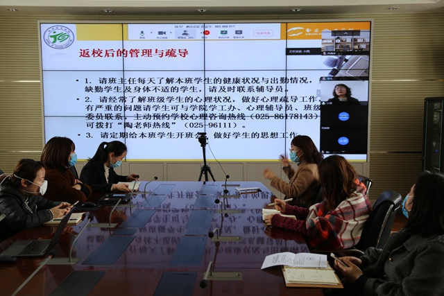 教师院党总支相关负责人部署了本学期班主任工作,从返校前、返校途中与返校后三个阶段提出了开学工作的具体要求。她强调,班主任需按照学工处要求按时召开线上班会,引导学生做好报到当天的准备,以及配合入校后的管理。全体班主任要充分履职尽责,让学生们重视对疫情的防护措施但不产生恐慌情绪,明确遇到突发状况的应对方法以及在宿舍、食堂、浴室等公共场所的注意事项。