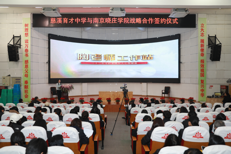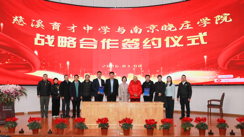 3月8日,南京晓庄学院与慈溪育才中学举行合作签约仪式。慈溪市教育局副局长徐国庆,慈溪育才中学董事长沈宏邦、党支部书记沈建锋,南京晓庄学院副校长、教育发展基金会副理事长顾勤出席仪式。双方相关单位负责人及慈溪育才中学全体教职工参加活动。