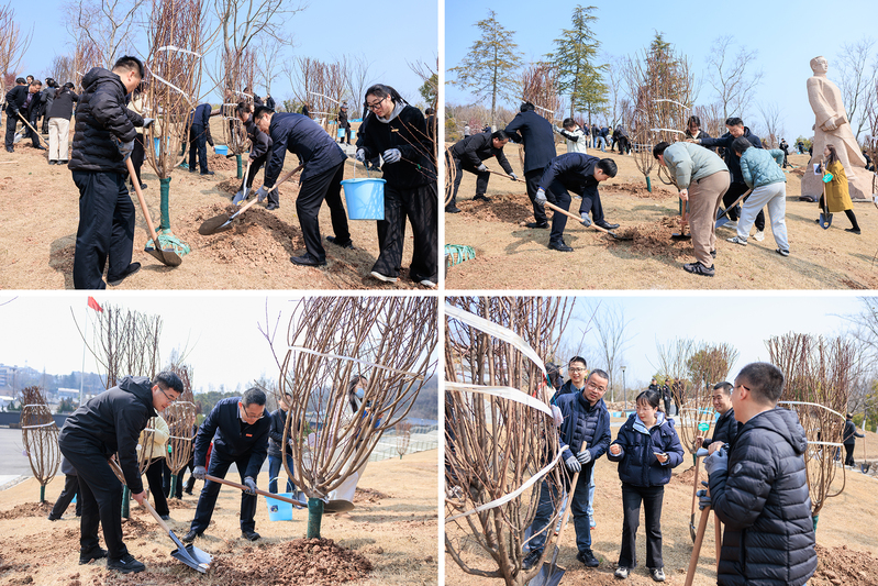 随后,全体人员来到植树现场,迅速投入到植树劳动中。大家分工协作、默契配合,挥锹培土、扶苗正干、围堰浇水,每一个动作都认真细致、一丝不苟。春日暖阳下,身影忙碌而有序,欢声笑语间,一棵棵充满生机的树苗迎风挺立,为行知园增添了一抹抹鲜活的新绿,也寄托着校地共建、共育新人的美好愿景。参与人员纷纷表示,亲手栽下的不仅是一株株树苗,更是对教育事业的赤诚坚守、对行知精神的传承延续,以及对校地同心、共促发展的殷切期盼。
