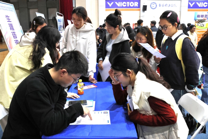 招聘会聚焦我校办学特色与毕业生专业结构,共邀请200余家优质用人单位携近4000个岗位参会,覆盖教育、文化传媒、信息技术、金融、智能制造、现代服务等多个领域,充分满足我校新师范、新文科、新工科等不同专业毕业生的求职需求。南京市委宣传部联合我校相关二级学院提前谋划供需关系,在招聘会现场设立“南京文化企业招聘专区”,助力文化传媒类人才的双向对接,为毕业生留宁“生根发芽”提供温热土壤;共青团南京市委联合南京市人力资源和社会保障局、各区团委为毕业生带来南京市人才政策2.0及各区引才政策咨询、西部(乡村振兴)计划政策宣传、公职类考试服务咨询、简历指导、12355心理咨询等,助力大学生精准就业。江宁区妇女联合会、南京市女企业家协会专门设立“女企业家招聘专区”,聚焦女大学生就业需求,提供专属岗位与就业支持,以多元化、多层次的岗位供给,实现毕业生求职与企业用人的精准匹配。活动现场人头攒动,毕业生求职热情高涨,参与度较往年显著提升。