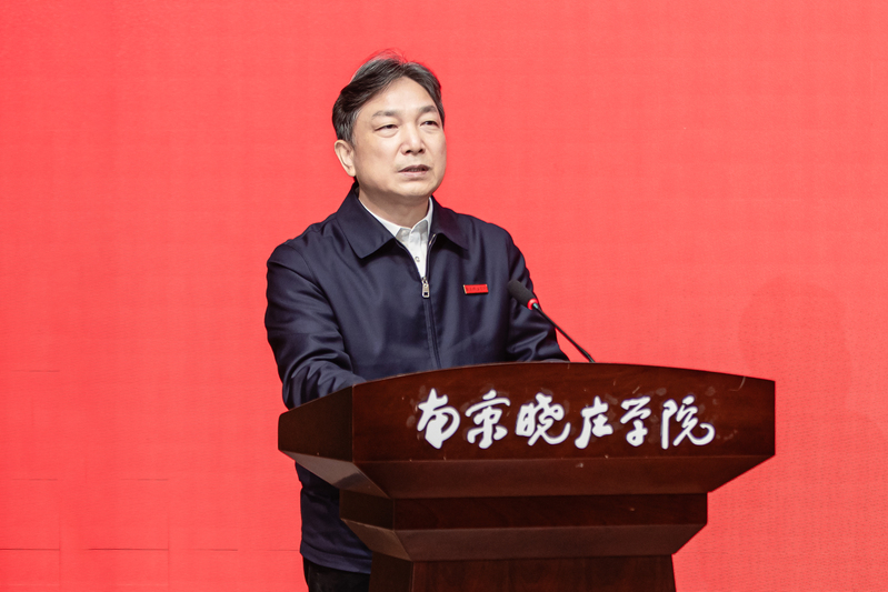 周洪宇在讲话中首先回顾了自己与南京、与南京晓庄学院的深厚学术渊源,并详细介绍了长江教育研究院的发展历程。他指出,长江教育研究院多年来深耕教育政策研究与智库建设,致力于推动中国教育现代化进程。谈及陶行知教育思想,周洪宇表示,陶行知先生“生活即教育”“社会即学校”“教学做合一”等理念博大精深,至今仍具有极强的时代价值。南京晓庄学院作为陶行知先生亲手创办的学校,不仅行知精神底蕴深厚,更拥有宝贵的红色资源——早在1928年,晓庄就建立了中共党支部,涌现出晓庄十英烈等革命志士,红色基因与行知精神交相辉映。他强调,当前国家高度重视红色教育,将其作为赓续红色血脉、培养时代新人的战略工程。红色教育数智记忆实验室的建设,要紧扣国家需求,立足红色基因传承与数智技术创新,聚焦红色资源数字化开发、沉浸式红色教育场景构建、记忆育德理论研究与实践推广等重点工作,力争早日建成省级乃至国家级文科实验室,努力打造集教学、研究、实践于一体的高水平育人平台,让红色基因代代相传,让行知精神焕发新的时代光彩。