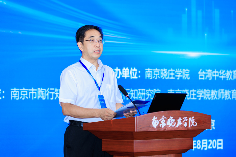 8月20日,第十一届“宁台行知教育论坛”在南京晓庄学院晓庄校区行知园举行。台湾中华教育创新发展学会副理事长林玉霞,南京市台办副主任胡晋梅,南京市教育局一级调研员、南京市陶行知研究会会长卢普新,南京市栖霞区委常委、统战部部长章晶,栖霞区教育局局长倪天华、台办主任叶琳,南京晓庄学院校长张志华、副校长赵向军出席论坛。来自海峡两岸的教育学者,中小学及幼儿园校长、园长等共100余人,以“人工智能时代儿童学习方式的创新与变革”为主题,分享了各自的研究成果和实践经验。