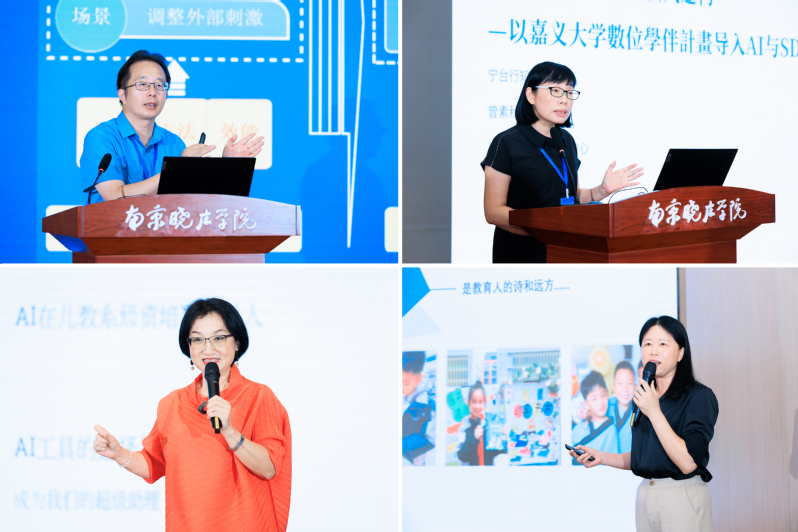 学术报告环节,南京师范大学沈书生教授、台湾嘉义大学曾素秋副教授、台湾中台科技大学连宝静副教授分别从各自的研究领域出发,就人工智能对于教育公平与质量的影响与作用、嘉义大学“数字学伴”模式建构,以及人工智能在台湾地区幼儿园中的应用作主旨报告。
