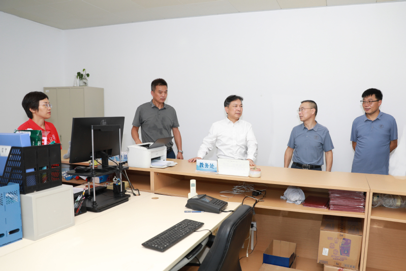 8月24日,校党委书记张策华,副校长鲁学军、刘光祥带队检查方山校区新学期各项工作的准备情况。
