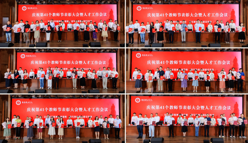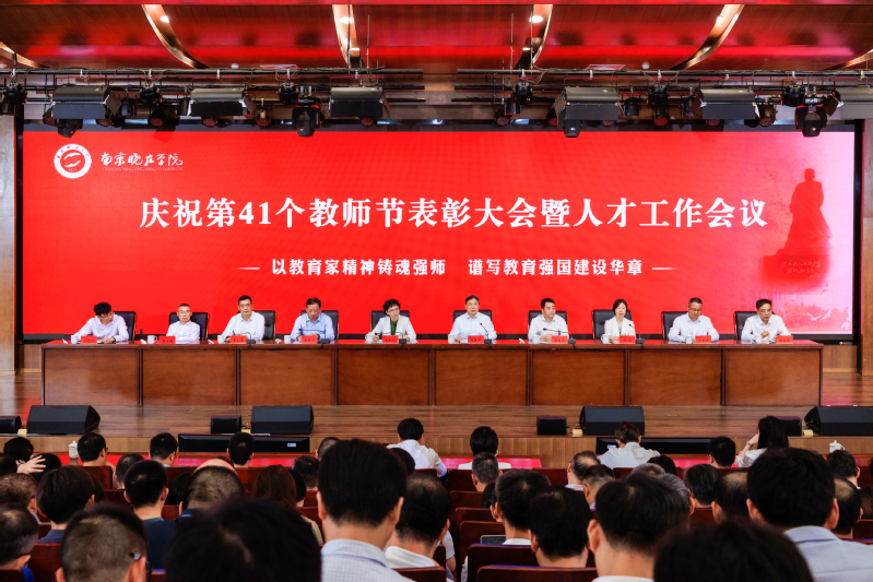 秋风送爽,硕果盈枝。9月9日,我校举行庆祝第41个教师节表彰大会暨人才工作会议,激励全体教职工以教育家精神铸魂强师,谱写教育强国建设华章,努力为“百年晓庄”建设凝聚磅礴的人才力量,为加快建设新时代教师教育特色鲜明的高水平大学继续奋斗。江苏省教育厅二级巡视员崔春霞、南京市教育局二级巡视员潘东标,高师处处长黄渭波受邀出席,校领导、中层干部、教研室主任、专业负责人,教师代表参加会议。大会由副校长顾勤主持。