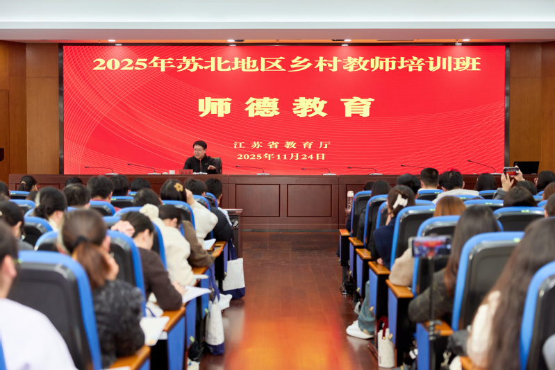 11月24日,“2025年苏北地区乡村教师培训班”开班仪式在我校莫愁校区举行。江苏省教育厅二级巡视员焦伟、教师工作处处长张卫星,南京晓庄学院党委副书记易永建出席仪式,与来自苏北五市及湖北秭归的84名幼儿园骨干教师共同开启为期5天的研修之旅。