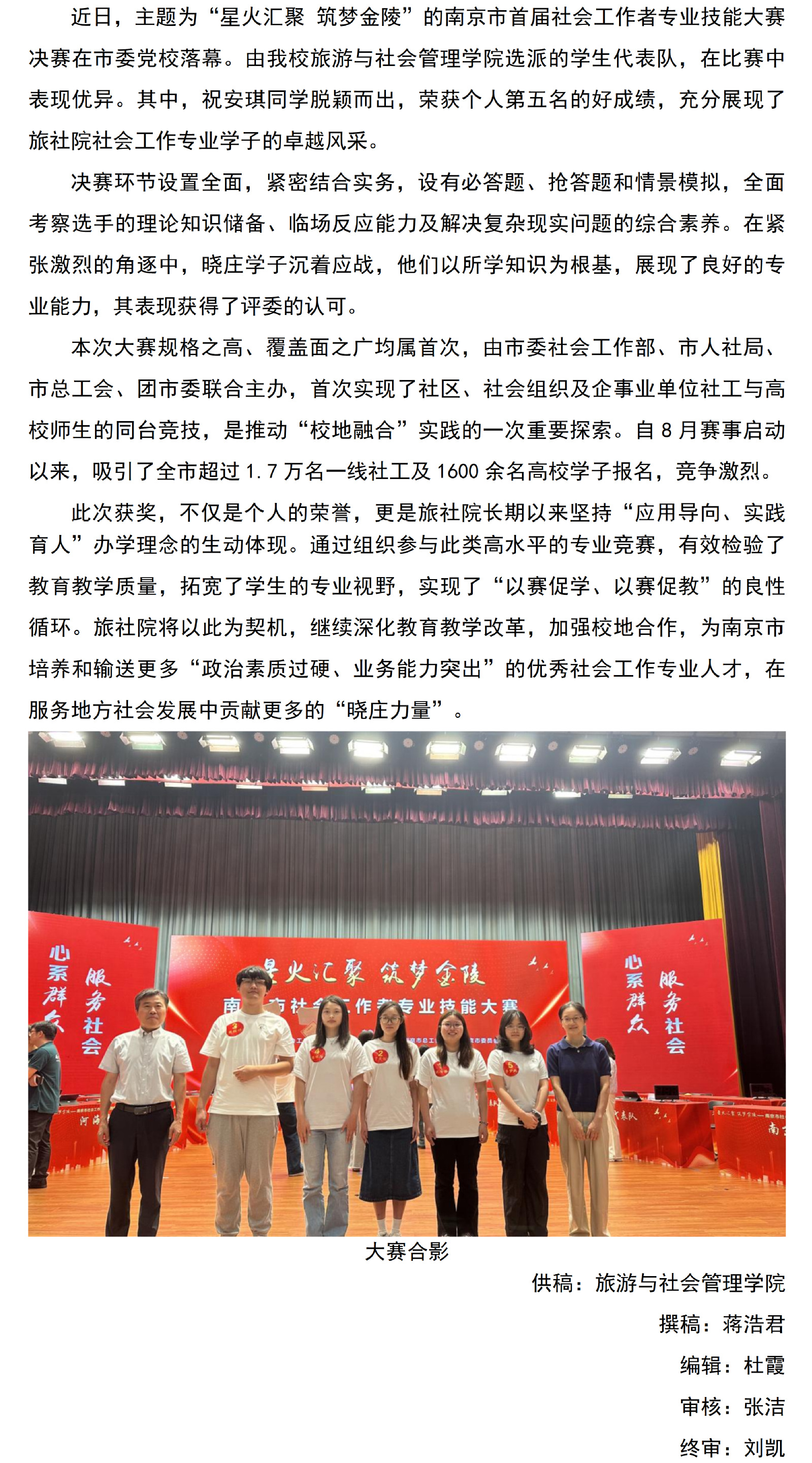 旅游与社会管理学院学子在市首届南京市社会工作者专业技能大赛中斩获佳绩