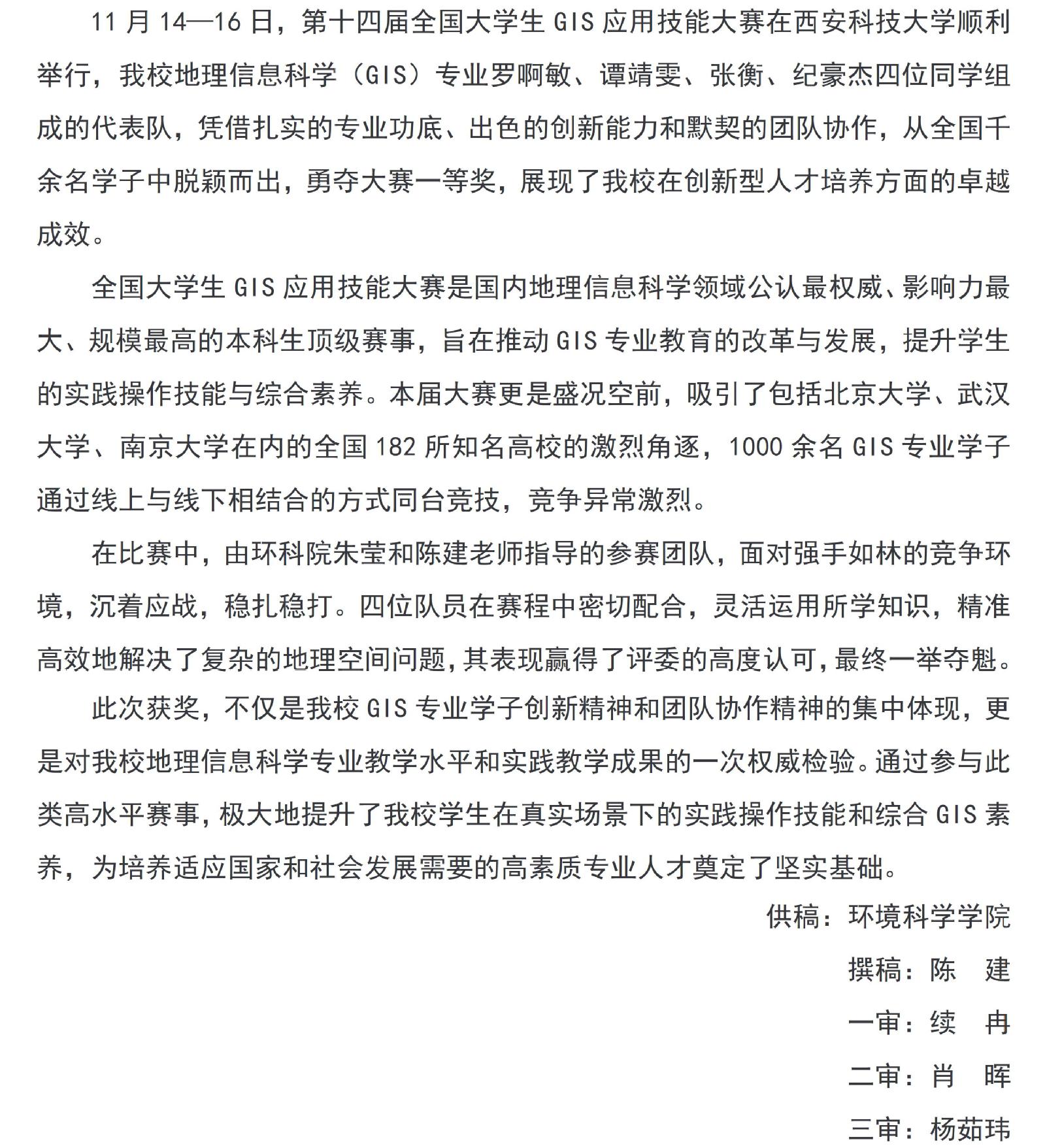 我校学子荣获全国大学生GIS应用技能大赛一等奖
