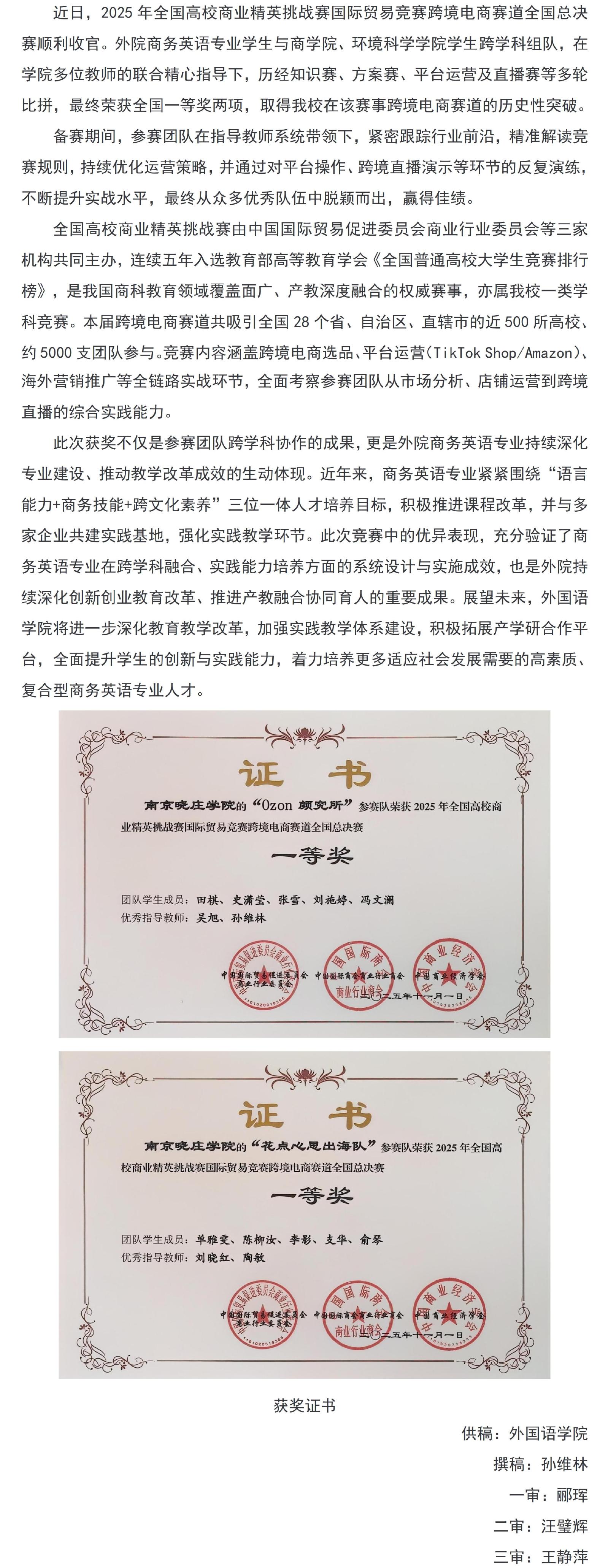 外院学子在全国高校商业精英挑战赛国际贸易竞赛跨境电商赛道中斩获佳绩