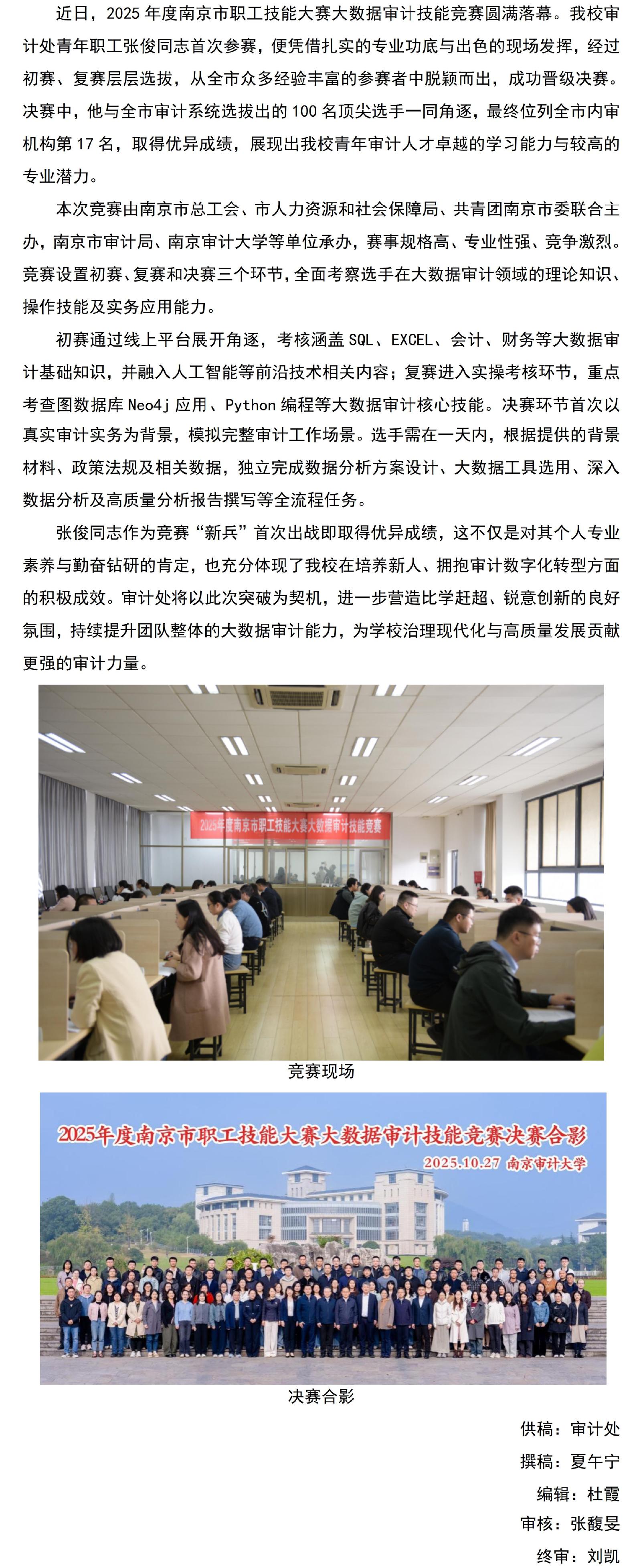我校青年职工首次挺进南京市职工技能大赛大数据审计技能竞赛决赛