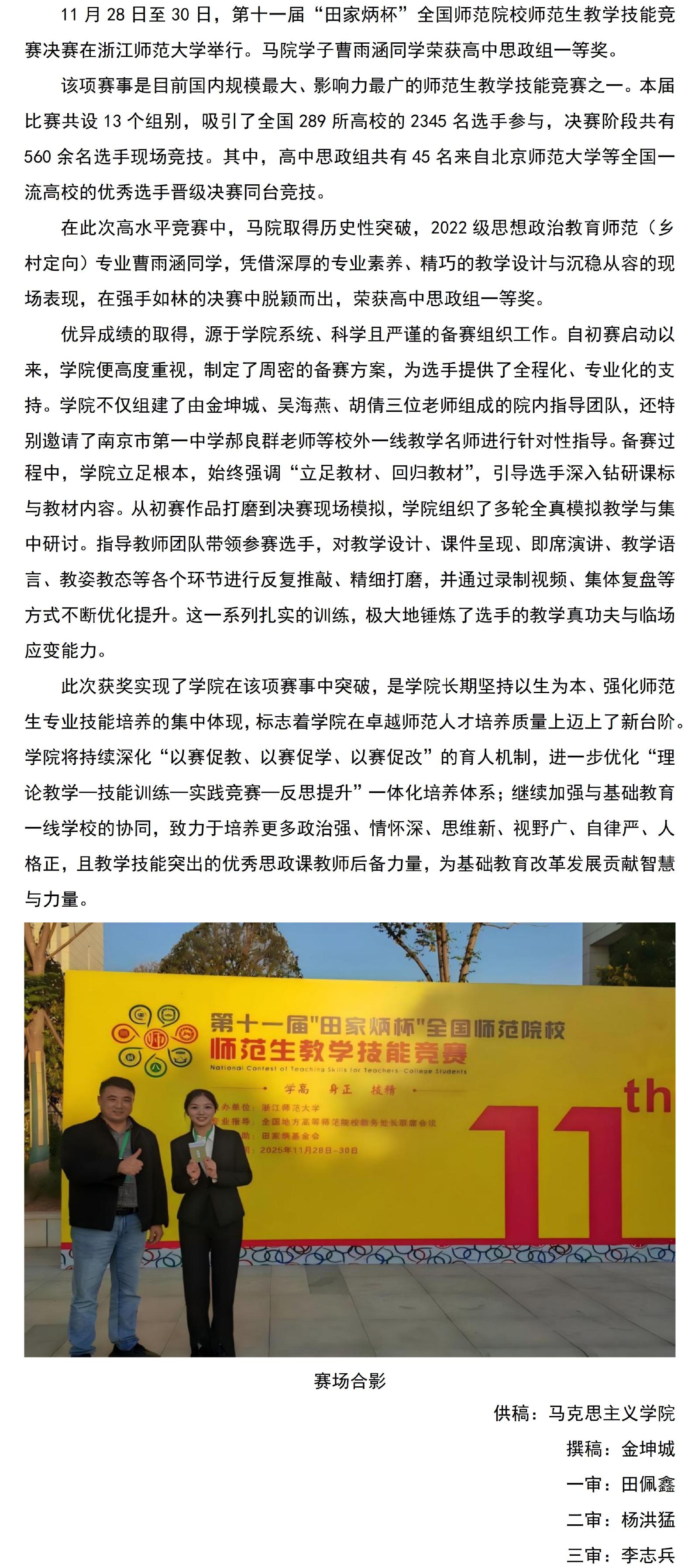 马院学子在第十一届“田家炳杯”全国师范院校师范生教学技能竞赛中荣获一等奖