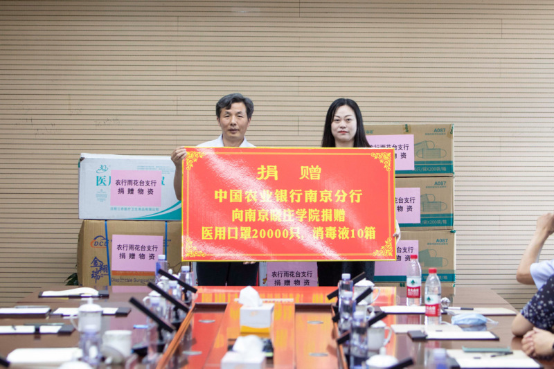 会上签署了合作协议书,农行雨花台支行向我校捐赠防疫物资。