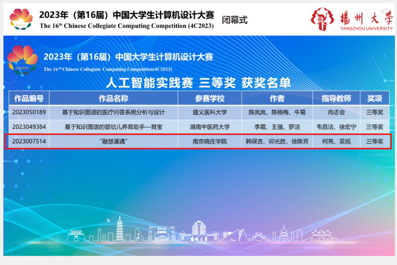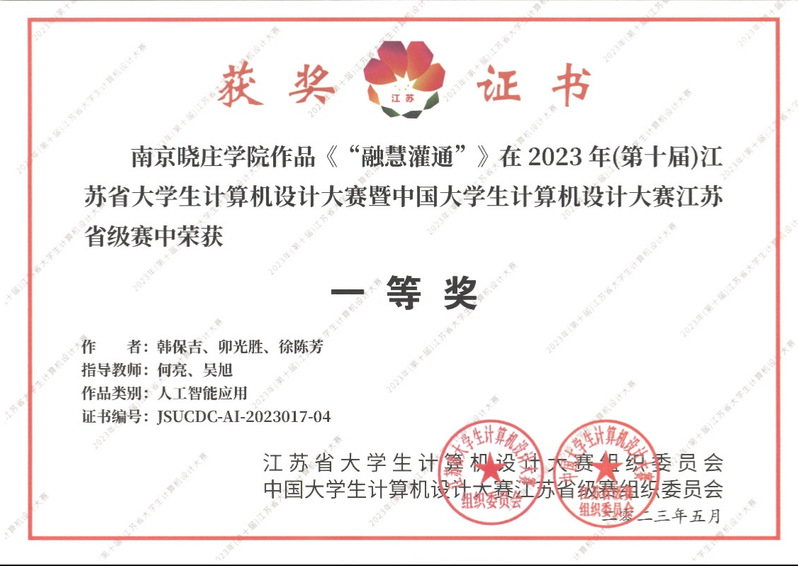 2023年(第16届)中国大学生计算机设计大赛近日落下帷幕。我校环境科学学院教师何亮、吴旭指导的作品《融慧贯通》(参赛学生:21级地理信息科学专业的韩保吉、徐陈芳,22级地理信息科学专业的卯光胜),经过校赛、省赛和国赛等阶段的层层选拔,最终获中国大学生计算机设计大赛“人工智能实践”类全国总决赛三等奖。