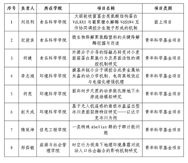 8月24日,国家自然科学基金委员会公布了2023年国家自然科学基金集中接收申请项目的评审结果。我校8个项目获批立项,其中面上项目1个、青年科学基金项目7个。