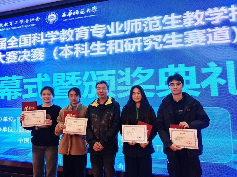 12月1日至3日,“第十一届全国科学教育专业师范生教学技能创新大赛”决赛(本科及研究生赛道)在西华师范大学举行。我校食品科学学院周泉澄老师指导的4名学生参加了决赛。其中,乔沁、张静、孙晨曦3位同学获得二等奖,李承宇获三等奖,创学院历史最好成绩。